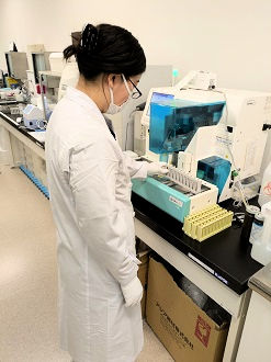 感染症検査は自然界にも存在する菌の検査の為汚染しないように注意深く測定しています。
